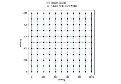 If the given region is not divisible by the desired spacing, either the region or the spacing will have to be adjusted. By default, the spacing will be rounded to the nearest multiple. Optionally, the East and North boundaries of the region can be adjusted to fit the exact spacing given. See the examples below.